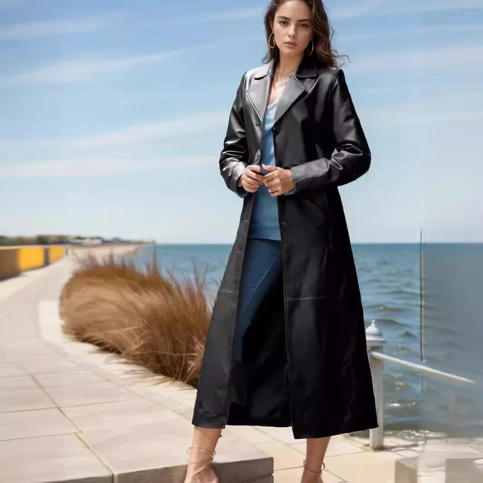 เสื้อแจ็คเก็ตหนังแท้ของผู้ชายกันน้ำแห้งเร็วระบายอากาศได้เสื้อโอเวอร์โค้ทตัวยาวสไตล์สลิมมิ่งยุโรปอเมริกันทันสมัยใหม่