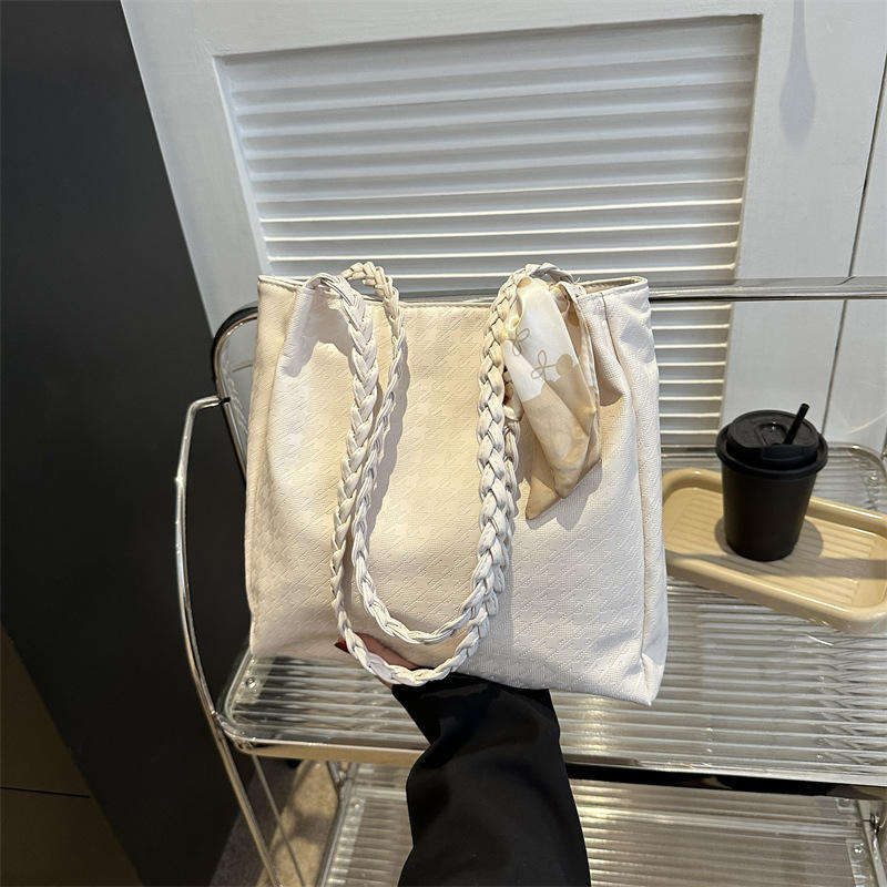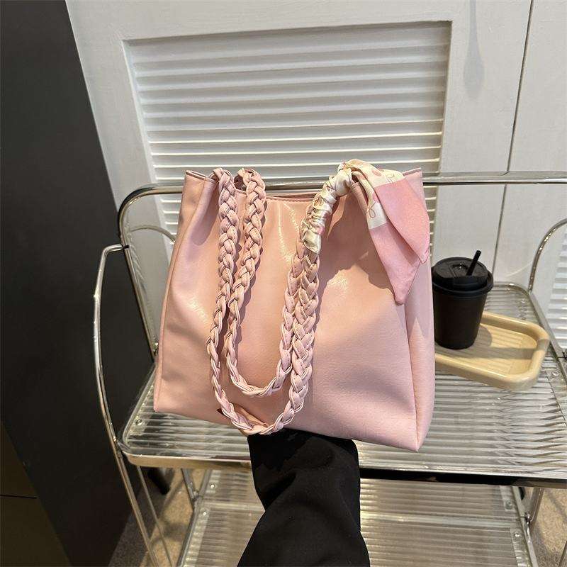 กระเป๋าสะพายไหล่ผู้หญิงแบบพกพาทันสมัยใหม่พร้อมซิปปิดความจุขนาดใหญ่กระเป๋าสะพายไหล่ตกแต่งด้วยผ้าไหมโบว์