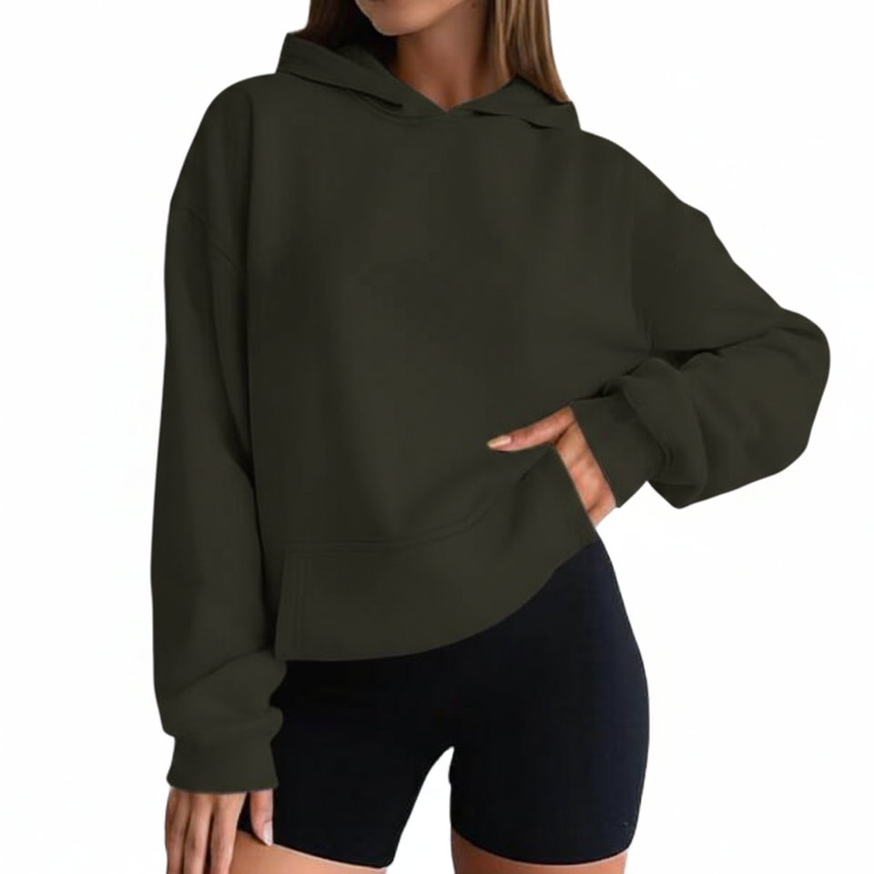 เสื้อฮู้ดดี้ผู้หญิงแฟชั่นใหม่ คุณภาพพรีเมียม สวมใส่สบายๆ ทุกวัน ทรงหลวม ไหล่ตก สีพื้น พิมพ์ลายได้ตามสั่ง