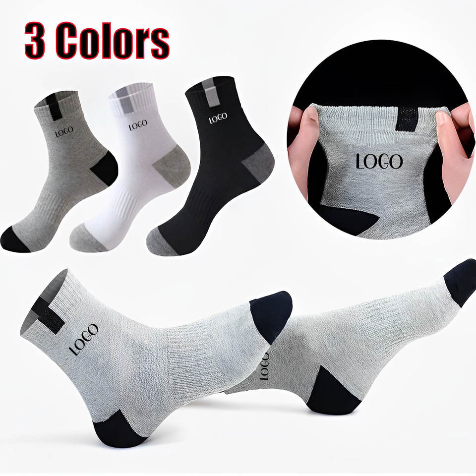 ถุงเท้ากีฬาผ้าฝ้ายลำลองแฟชั่นสำหรับผู้ชายดีไซน์เนอร์ถักด้วยตนเองให้ความร้อน