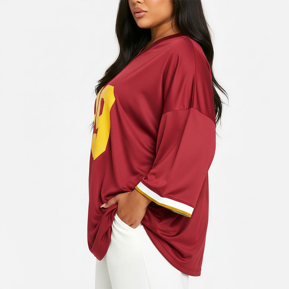แฟชั่นใหม่ ดีไซน์โดดเด่น คุณภาพเยี่ยม ระบายอากาศได้ดี ทรงโอเวอร์ไซส์ ไหล่ตก ผ้าฝ้าย 100% คอวี รับสกรีนโลโก้ เสื้อลำลองฤดูร้อน