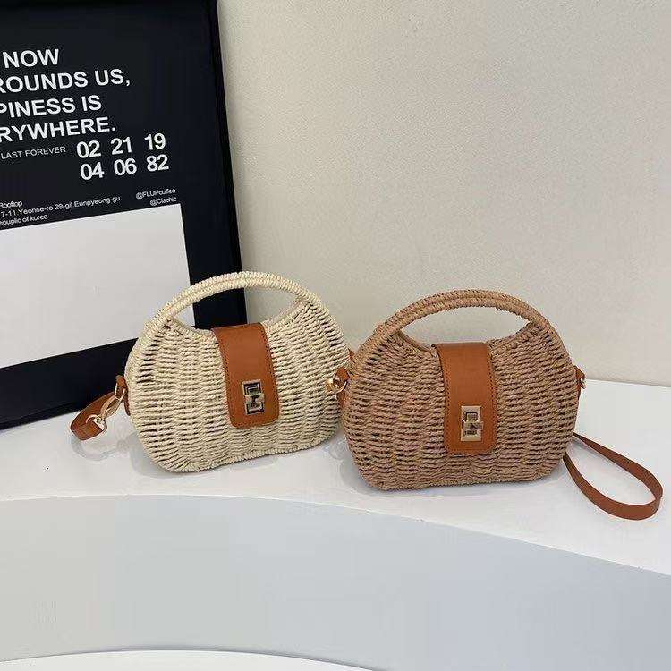 กระเป๋าถือสตรีทรงครึ่งวงกลมสไตล์วินเทจทันสมัย ทำจากหวายถัก พร้อมซิปปิด เหมาะสำหรับการเดินทางท่องเที่ยวกลางแจ้ง
