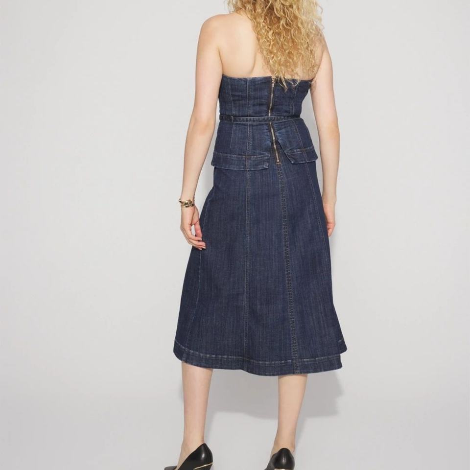 เดรสยีนส์สีน้ำเงินเข้มแบบใหม่ทันสมัย ทรงเข้ารูป กระโปรงบาน ซิปหลัง สำหรับผู้หญิง