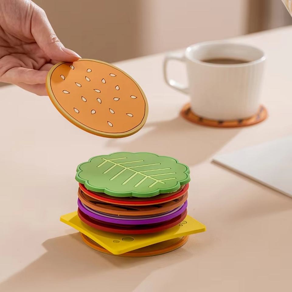 ชุดเบอร์เกอร์แฟชั่นใหม่สุดสร้างสรรค์ ชุดจานรองแก้วซิลิโคนกันน้ำสำหรับกาแฟและเครื่องดื่ม