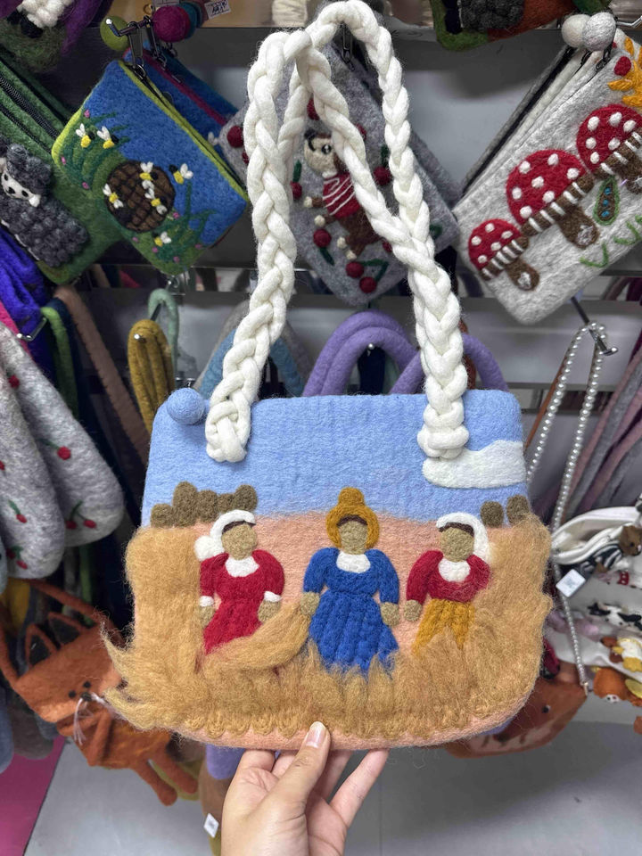 กระเป๋าหุ่นนิ้วทำจากผ้าสักหลาดสำหรับเด็ก ผลิตจากขนสัตว์ 100% ผลิตในเนปาล