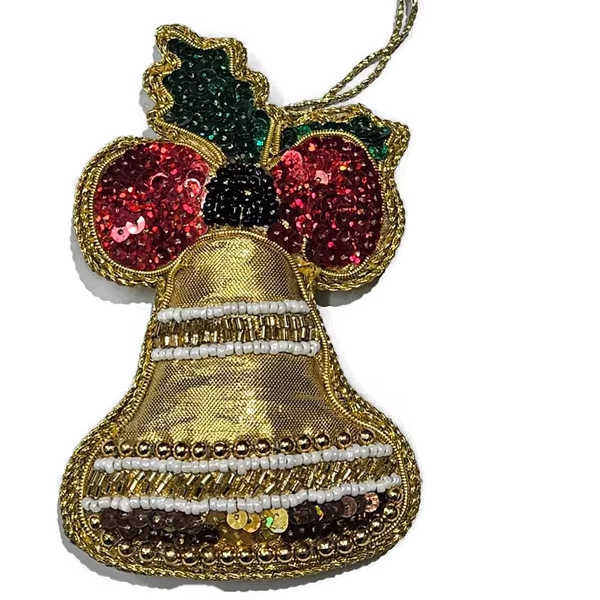 ระฆังเลื่อมสีทองสีแดงสีเขียวสำหรับเทศกาลใหม่ประดับต้นคริสต์มาสประดับแบบแขวนประดับด้วยลูกปัดสำหรับงานเฉลิมฉลองวันหยุดทำด้วยมือ
