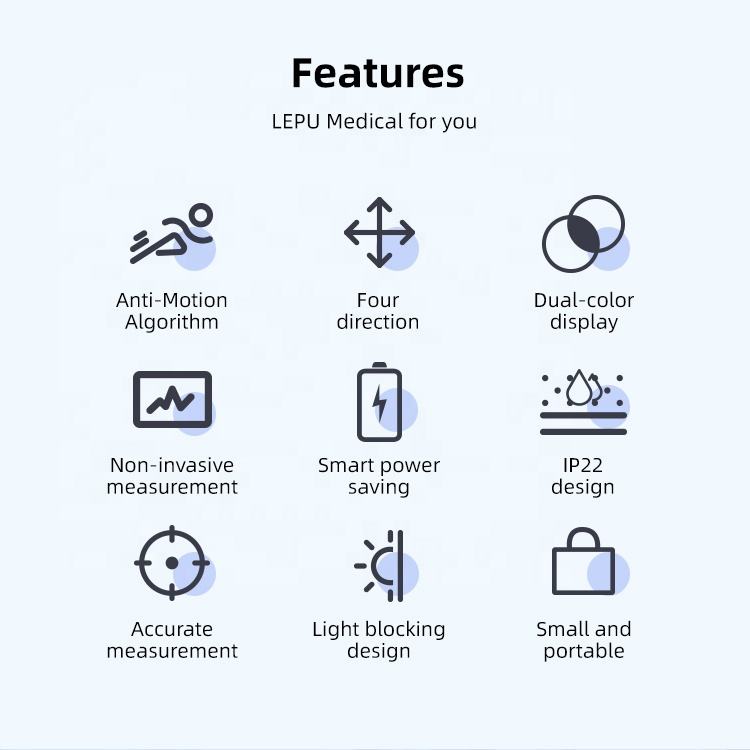 จอแสดงผล:OLED แสดง SpO2, Pr, Pi, แถบชีพจรและรูปคลื่น