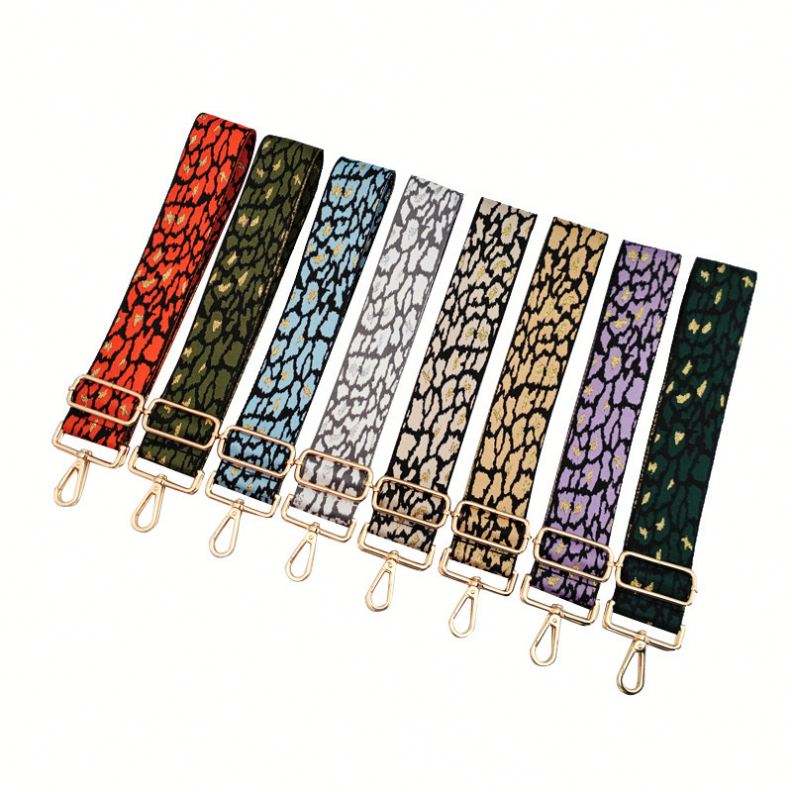 ใหม่กระเป๋าสะพายไหล่กว้างพิมพ์ลายเสือดาวผ้าไหมสีทอง5ซม. สามารถเปลี่ยนสายได้ลดภาระ