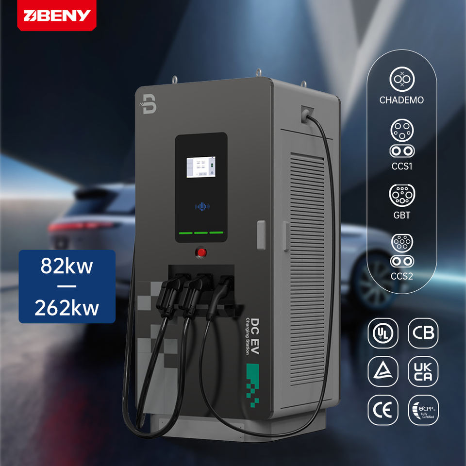 สถานีชาร์จรถยนต์ไฟฟ้าแบบเร็ว DC+AC 3 หัวชาร์จ กำลังไฟ 82KW-262KW ติดตั้งบนพื้น รองรับ OCPP1.6 มาตรฐาน IP55 รับประกัน 24 เดือน สายเคเบิลยาว 5 เมตร