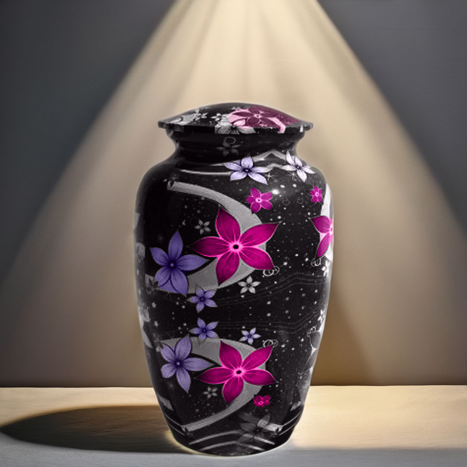 โกศบรรจุอัฐิลายดอกไม้สไตล์โมเดิร์นสำหรับผู้ใหญ่ สีสันปรับแต่งได้ ใช้เก็บอัฐิเป็นของที่ระลึก สำหรับงานศพ
