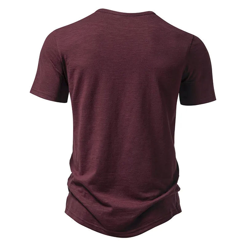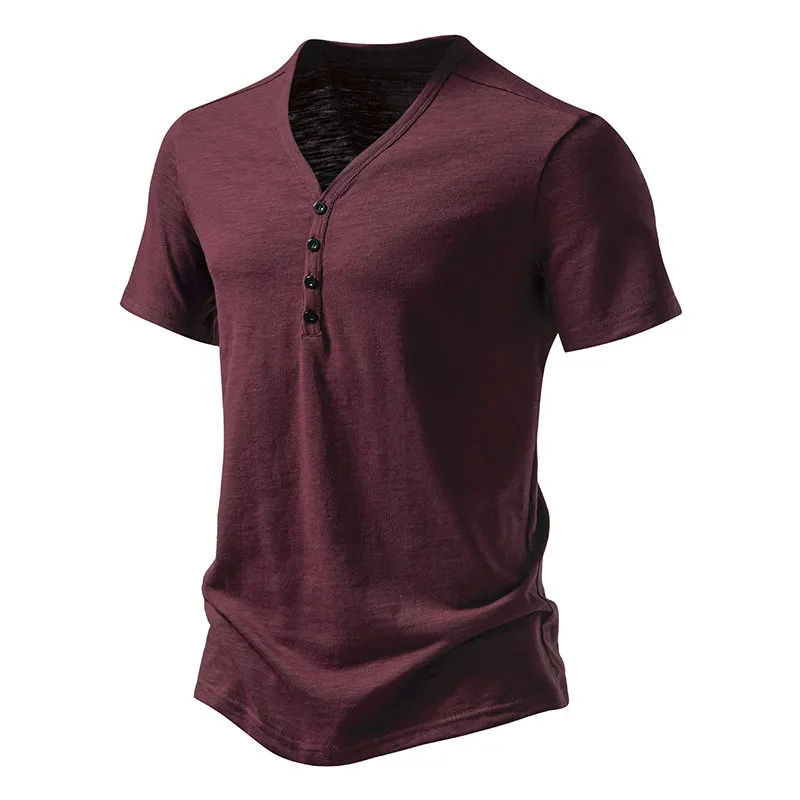 เสื้อยืดแขนสั้นคอวีกระดุมสี่เม็ดสำหรับผู้ชาย