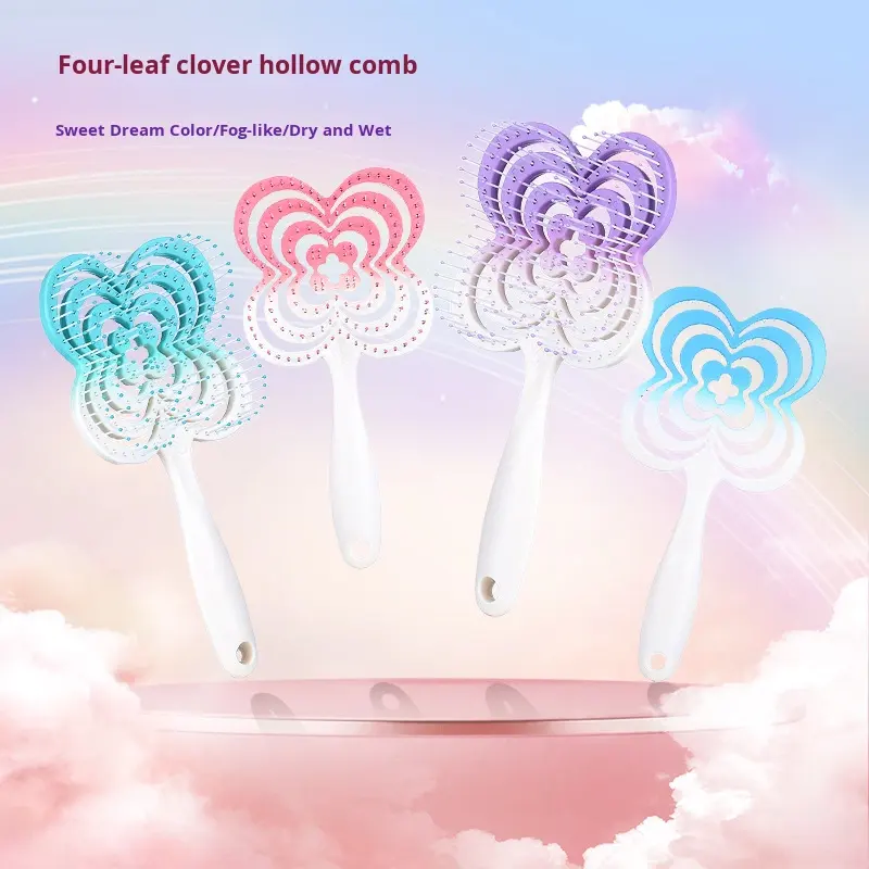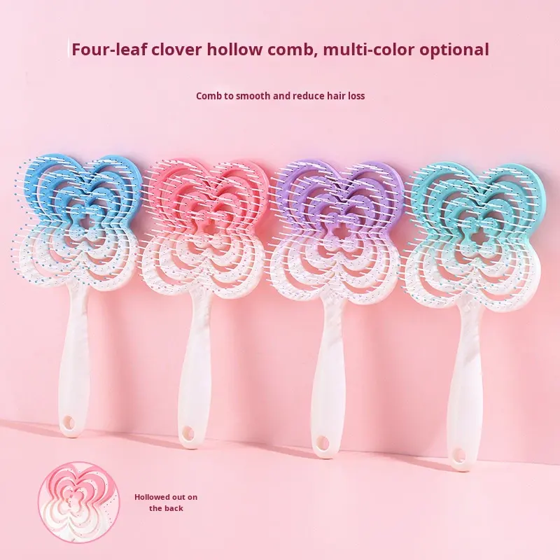 หวีม้วนยุงสำหรับเด็กผู้หญิงใหม่รูปใบโคลเวอร์แบบสี่แฉกพลาสติก ABS น้ำหนักเบาพกพาได้สำหรับนวดที่บ้าน