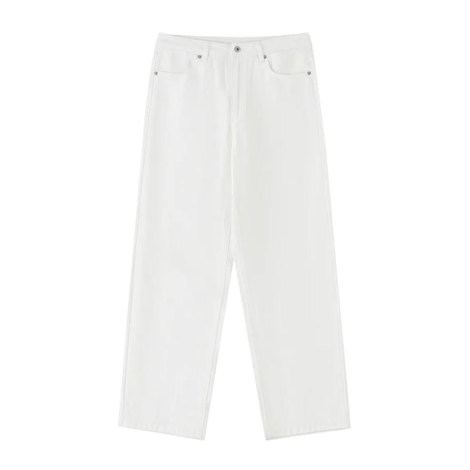 กางเกงยีนส์ขาตรงทรงหลวมสไตล์เกาหลีแบบใหม่ ปรับเอวได้ เหมาะสำหรับใส่ไปเรียนหรือทำงาน