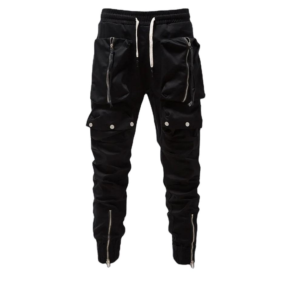 New Four-season Wearable Casual Pants Men's Zipper-decorated Large Pocket Elastic Waist Leggings