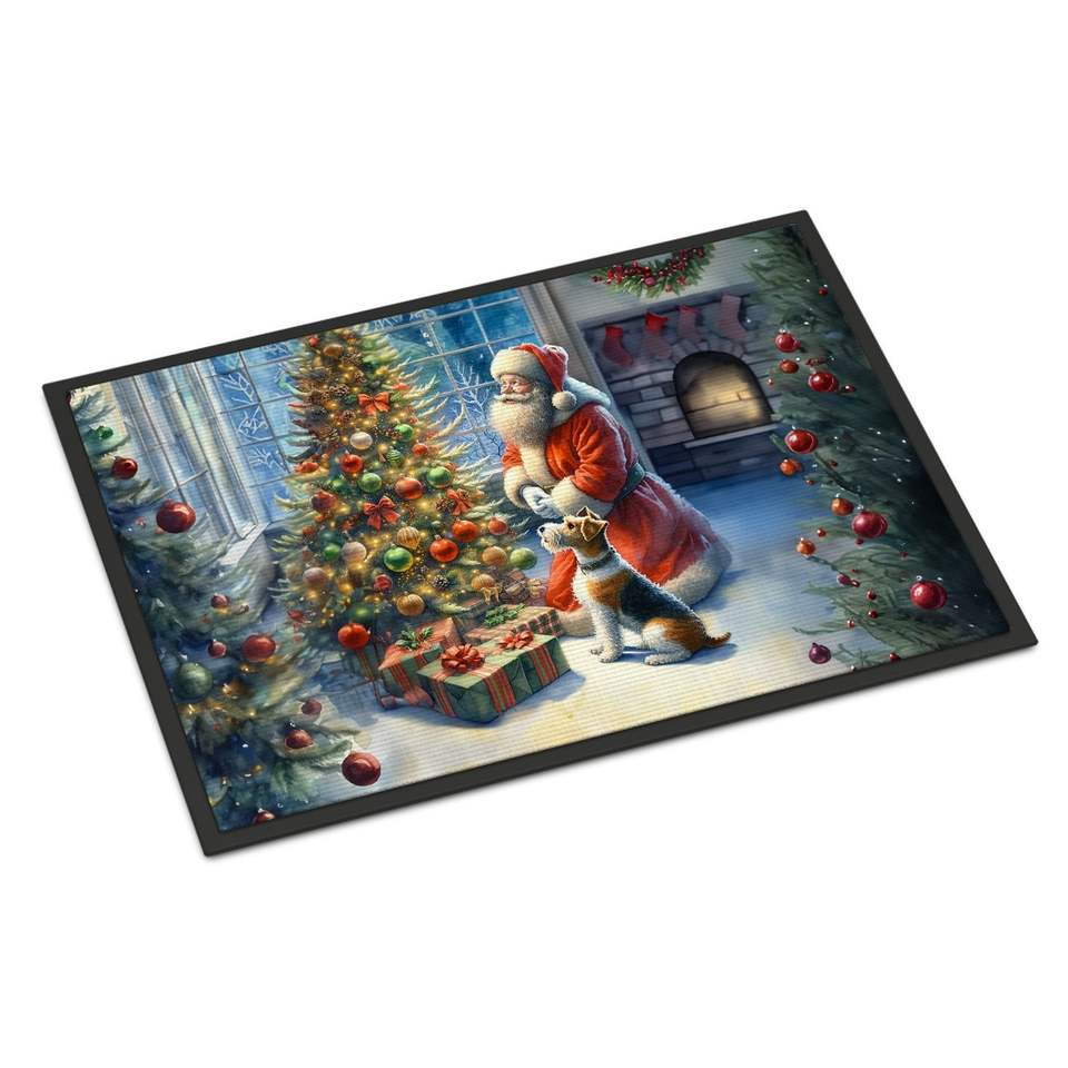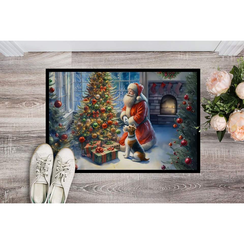 พรมเช็ดเท้าสุนัขจิ้งจอกเทอร์เรียร์ซานตาคลอสใหม่พรมเช็ดเท้ากันลื่นขนาด18ชม. X 27W พรมทางเข้ากลางแจ้งในร่มสำหรับประตูหน้าบ้าน