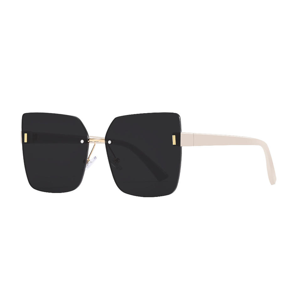 แว่นกันแดดไร้กรอบใหม่สำหรับผู้หญิงเลนส์พีซีสีดำป้องกันรังสียูวี 400 สไตล์เกาหลีดีไซน์ย้อนยุคอินเทรนด์