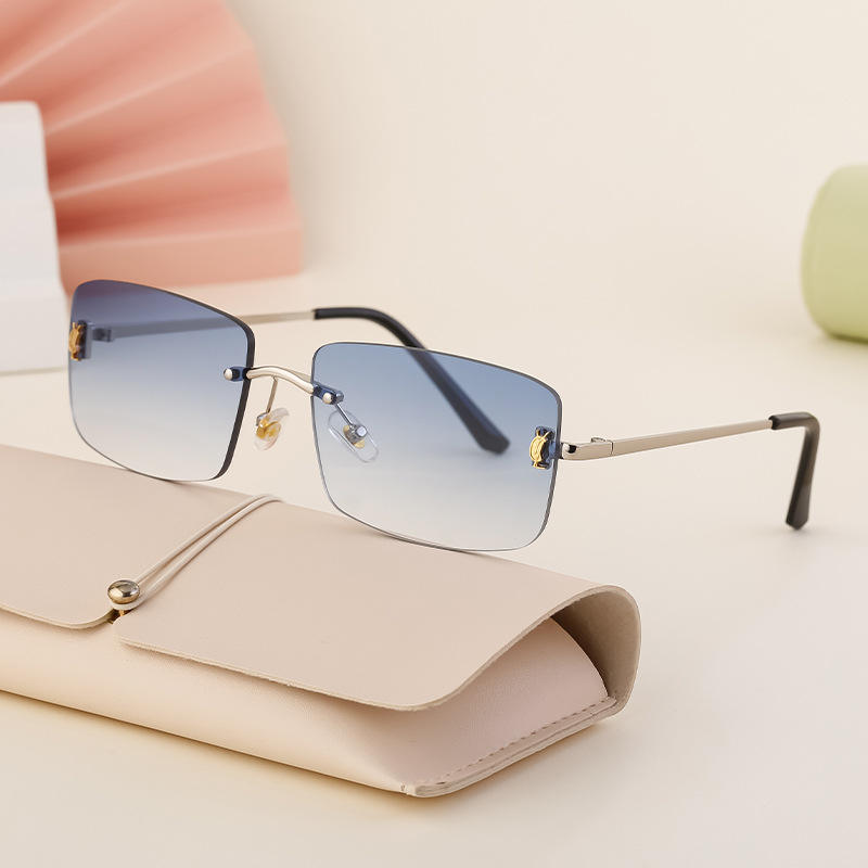 แว่นกันแดดไร้กรอบทรงสี่เหลี่ยมเล็ก รุ่น Unisex เลนส์ PC ป้องกัน UV400 กรอบโลหะพลาสติกสีดำ DG-98236-C