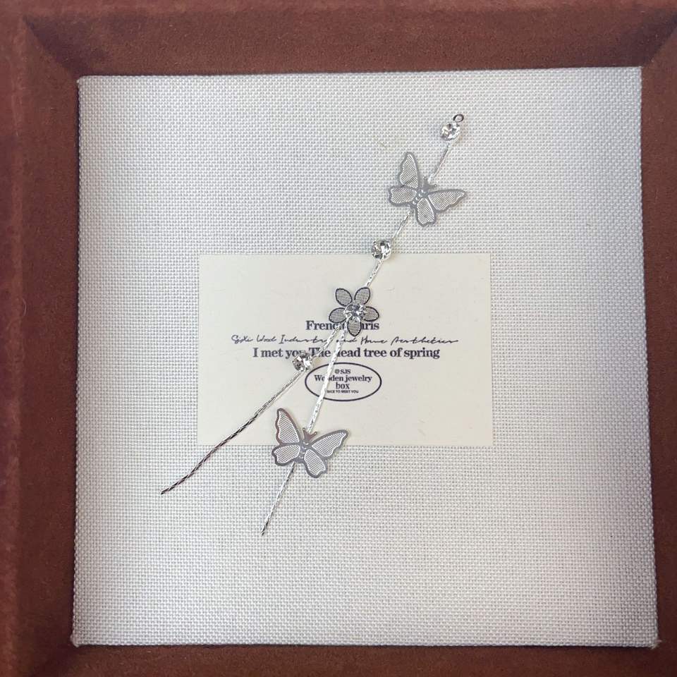 ต่างหูโซ่สีทองสดใหม่ประดับด้วยผีเสื้อพู่แบบหรูหราสไตล์ป่าสไตล์ญี่ปุ่นและเกาหลีแบบเรียบง่าย