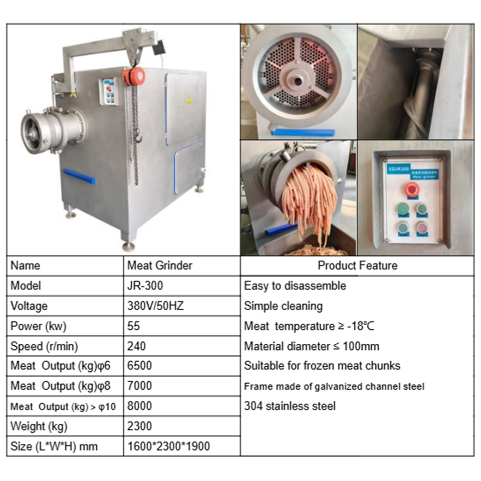 เครื่องบดเนื้อแช่แข็งและเนื้อสดอุตสาหกรรมรุ่นใหม่ พร้อมวัสดุสแตนเลส SUS304 สำหรับสายการผลิตในโรงงานอาหาร