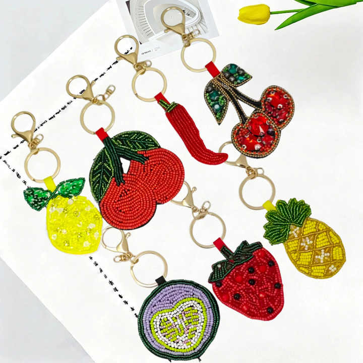 ชุดพวงกุญแจลูกปัดผลไม้ใหม่ สตรอว์เบอร์รี เลมอน เชอร์รี สับปะรด งานปักลูกปัด ติดกระเป๋า น่ารัก ซีรีส์ผลไม้ พวงกุญแจ อุปกรณ์เสริม