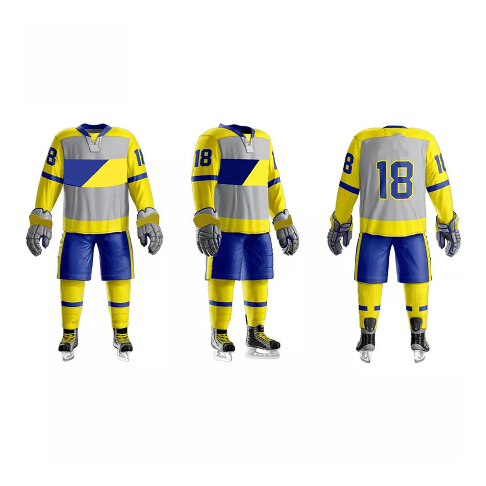 ชุดเสื้อฮ็อกกี้น้ำแข็งพิมพ์ลายซับลิเมชันเต็มรูปแบบดีไซน์โลโก้ไม่ซ้ำใครชุดฮ็อกกี้