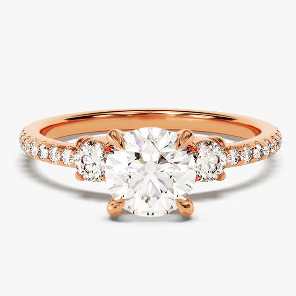 แหวนหมั้นหินสามชิ้นสำหรับปลูกในห้องปฏิบัติการใหม่14K/18K กุหลาบสีเหลืองสีขาวทองครึ่ง DS0514นิรันดร์