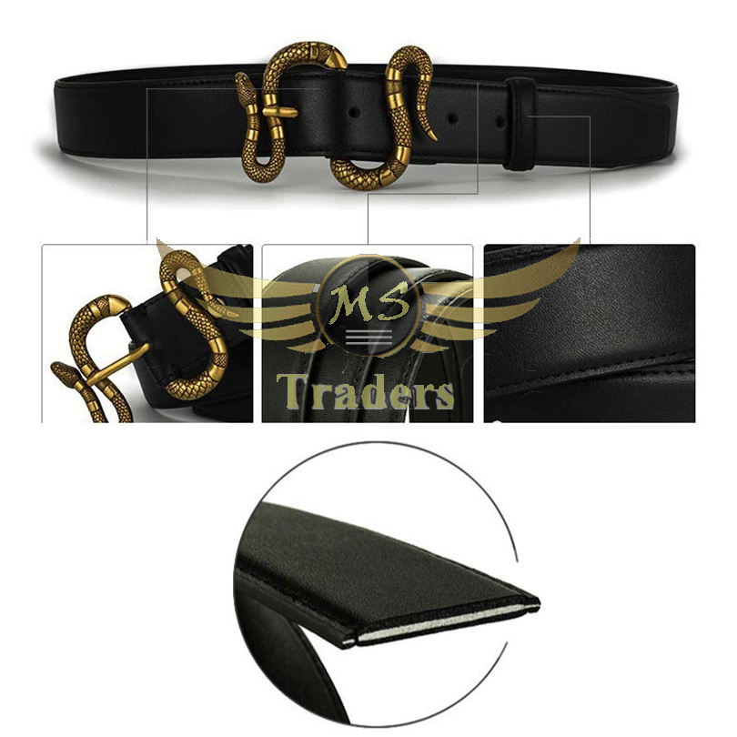 เข็มขัดหนังแท้สำหรับผู้ชาย,หัวเข็มขัดโลหะดีไซน์รูปงูหัวเข็มขัดปรับได้แฟชั่นเข็มขัดคาวบอยสำหรับผู้ชาย