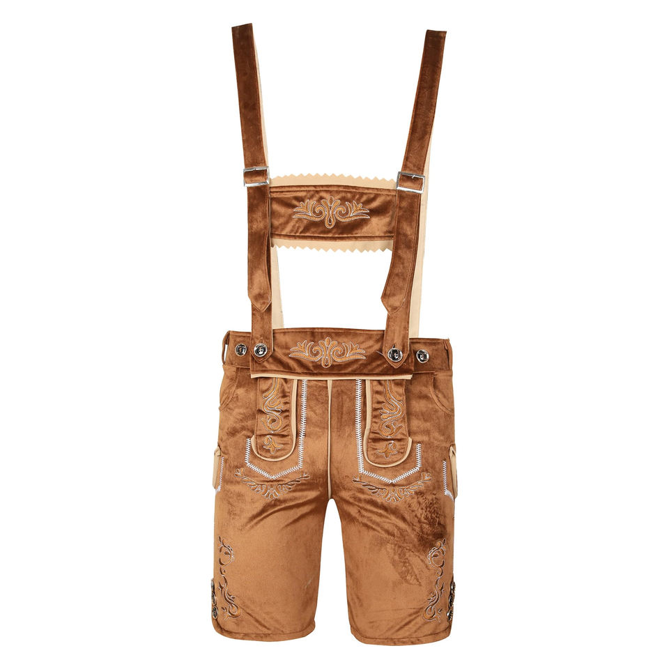 กางเกงขาสั้นผ้าแคนวาสหนังเยอรมันสีน้ำตาลสำหรับผู้ชาย สไตล์สตรีทแวร์ลำลองแบบบาวาเรียน ตกแต่งด้วยงานปัก สำหรับวัยรุ่นและผู้ใหญ่