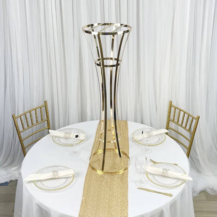 ชั้นวางดอกไม้เคลือบทองใหม่สำหรับตกแต่งโต๊ะงานแต่งงาน ชั้นวางสีทองสำหรับถ่ายรูป อุปกรณ์ตกแต่งงานแต่งงาน ขาตั้งดอกไม้งานแต่งงาน