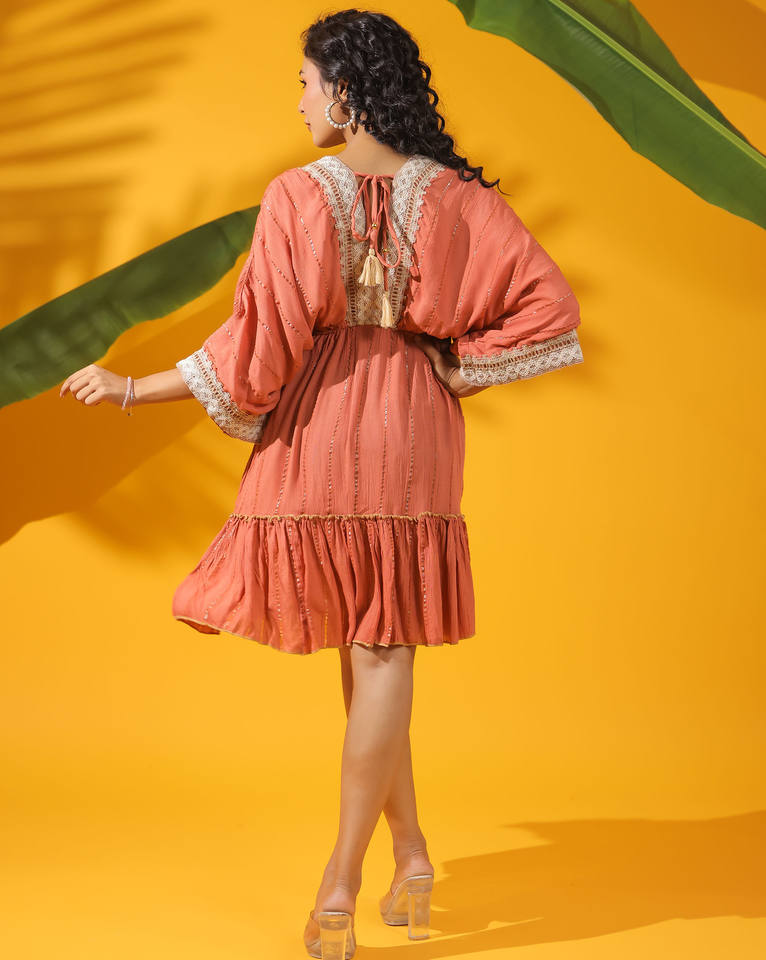 ใหม่สาวๆใส่ชุดเดรสสั้นพิมพ์ลาย lurex หรูหราพร้อมลูกไม้ดีไซน์เนอร์และใส่ได้พอดีกับโอกาสในฤดูร้อน