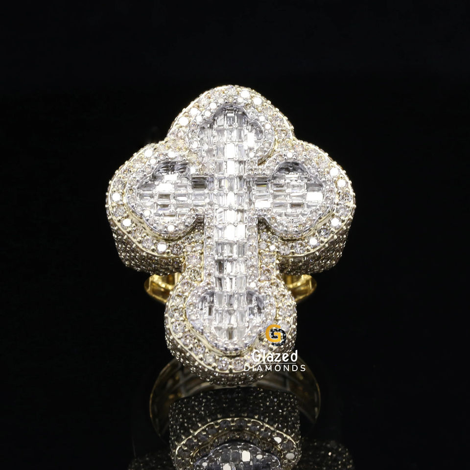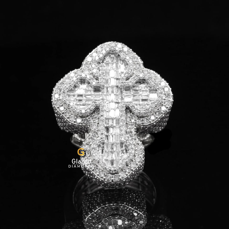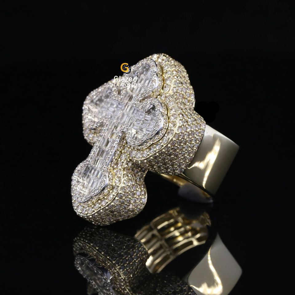 แหวนฮิปฮอปทรงกลมสุดสวย & Baguette Moissanite VD เพชรไร้สี925เงินสเตอริง
