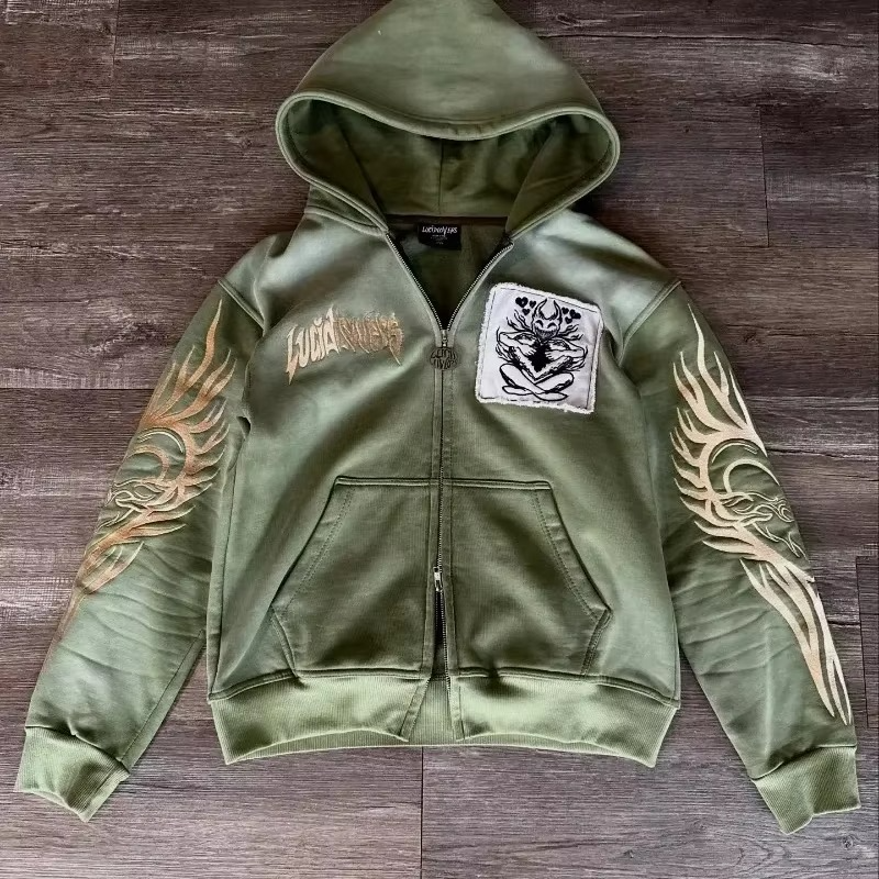 เสื้อฮู้ดซิปพิมพ์ลายดิจิทัลผ้าโพลีเอสเตอร์/คอตตอน ระบายอากาศได้ดี สไตล์โกธิคใหม่ สำหรับผู้ชายและผู้หญิง ทรงหลวม