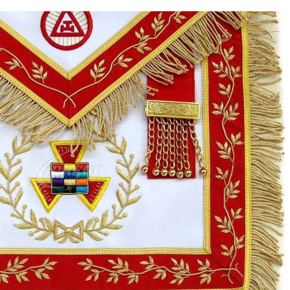 ผ้ากันเปื้อนพิธีกรรมระดับสูงรุ่นใหม่ - ผ้ากำมะหยี่สีแดงพร้อมพวงมาลัยและชายครุย