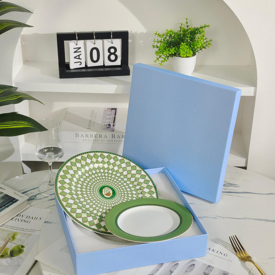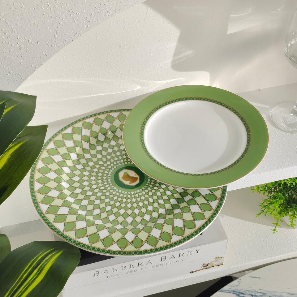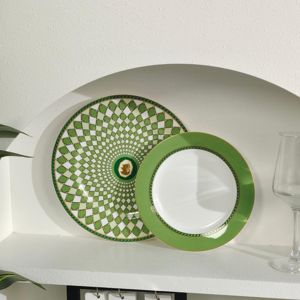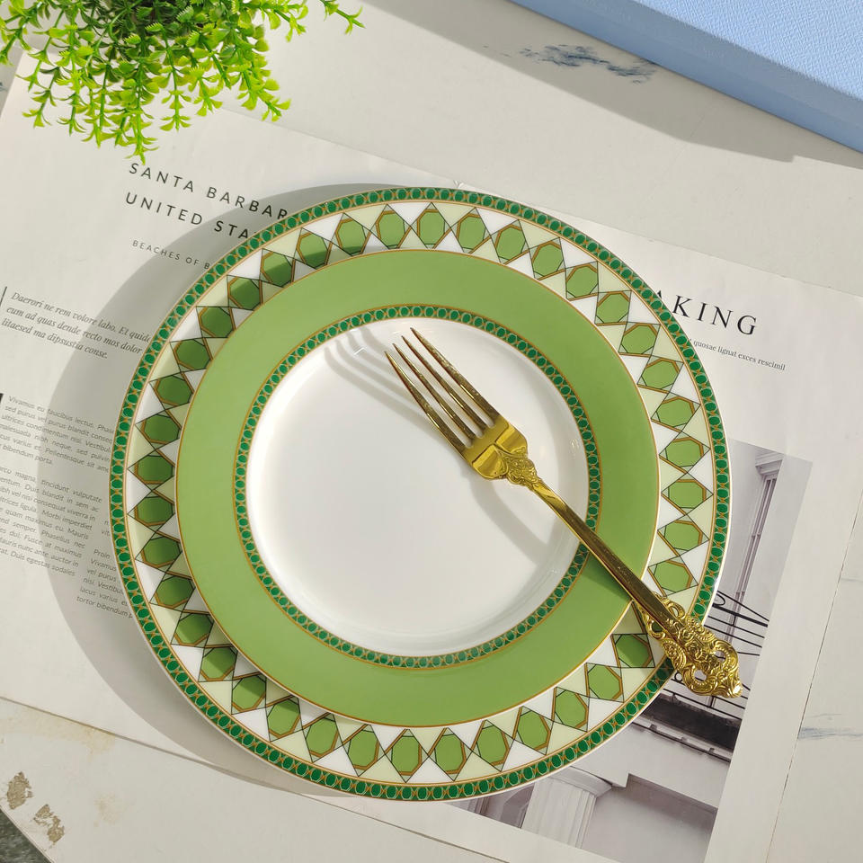 ชุดจานอาหารค่ำลายครามสไตล์ยุโรปสีเขียวใหม่