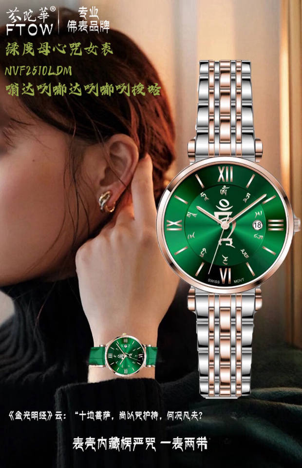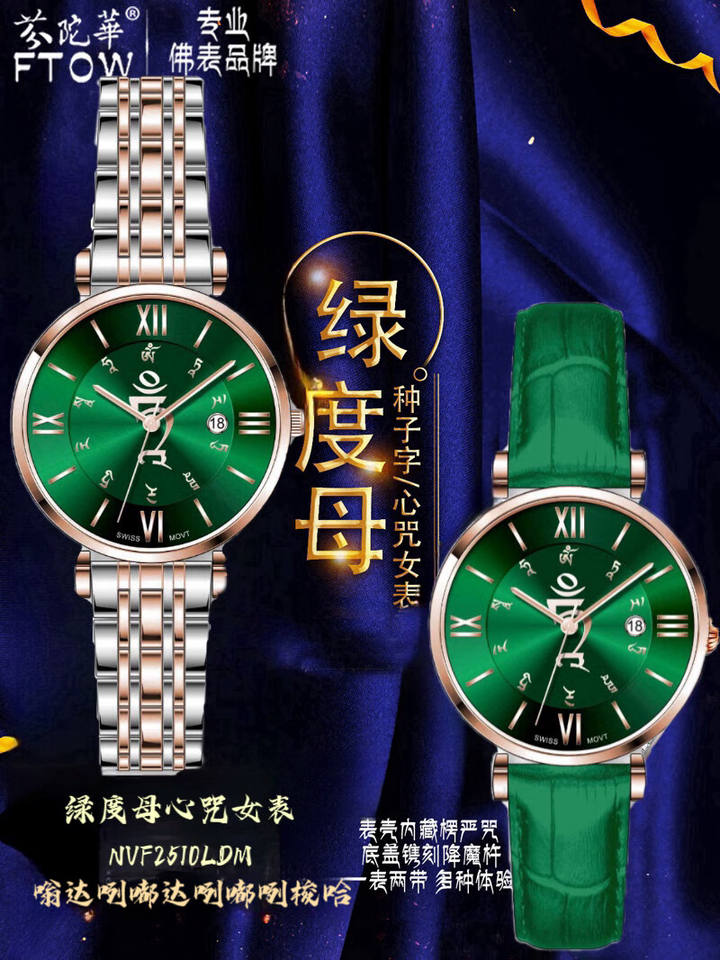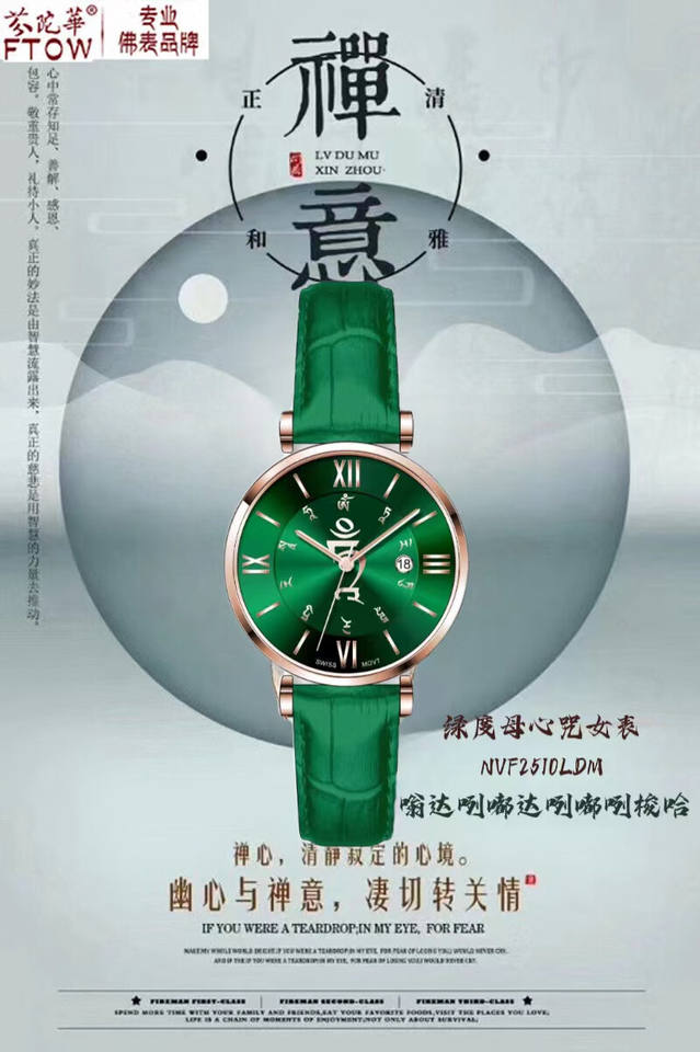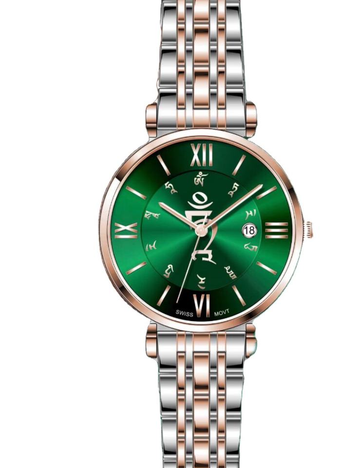 นาฬิกาผู้หญิงรูปหัวใจธาราสีเขียวใหม่นาฬิกาพระพุทธรูปสำหรับผู้หญิงบรรยากาศธุรกิจแฟชั่นการเคลื่อนไหวควอตซ์แบบสวิสที่เรียบง่าย
