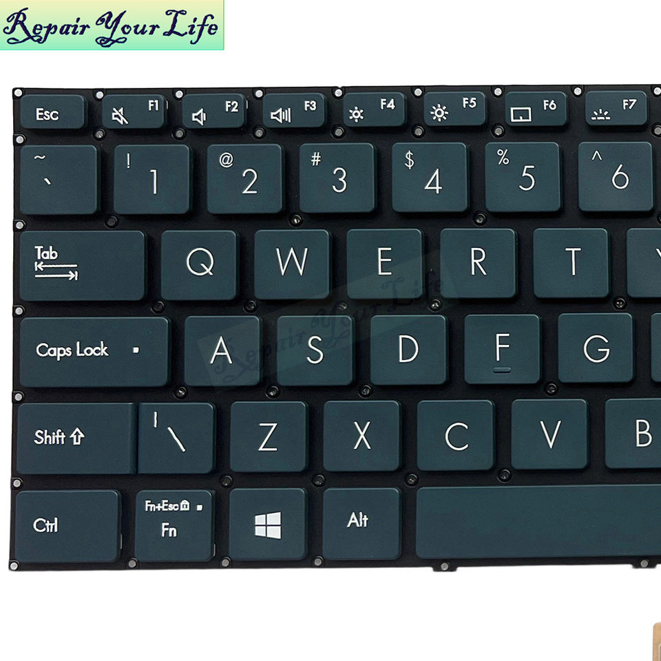 คีย์บอร์ดแล็ปท็อปแบบมีไฟพื้นหลังสีเทาสำหรับ Asus Zenbook Pro Duo แป้นพิมพ์ UX581GV UX581G เปลี่ยนโดยไม่มีกรอบ