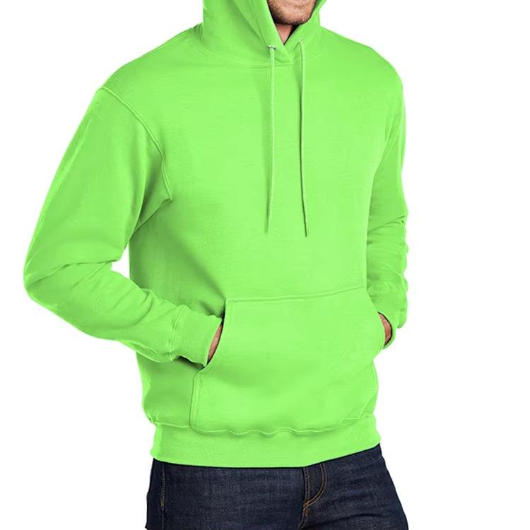 เสื้อฮู้ดดี้สตรีทแวร์สีเขียวนีออนคุณภาพสูงแบบใหม่พร้อมโลโก้สั่งทำพิเศษ ผ้าฝ้าย 100% เนื้อหนาสำหรับผู้ชาย