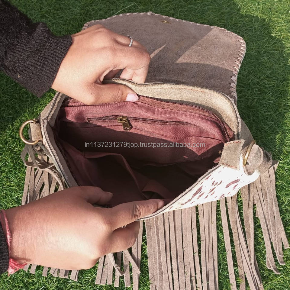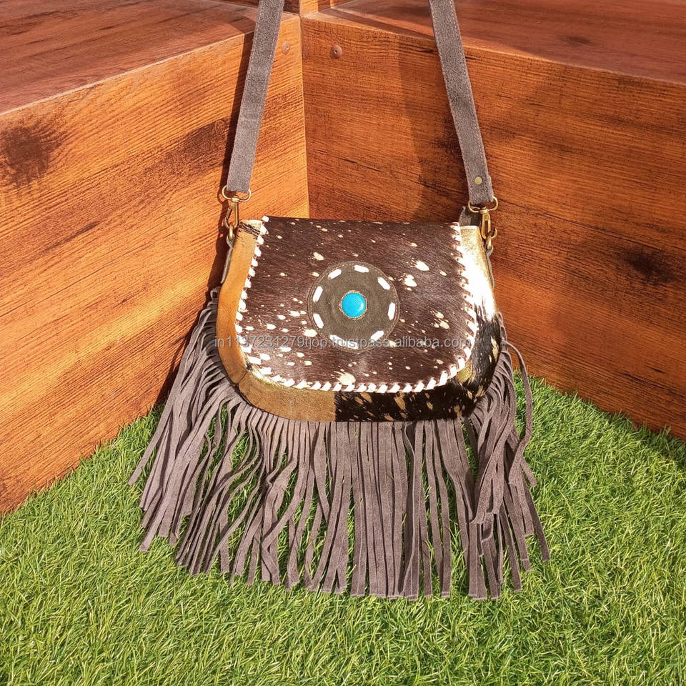 ใหม่ผมบนซ่อนโลหะขนหนังCrossbodyกระเป๋าสไตล์ตะวันตกหนังนิ่มขอบหินกลางสลิงกระเป๋าผู้หญิงของขวัญ