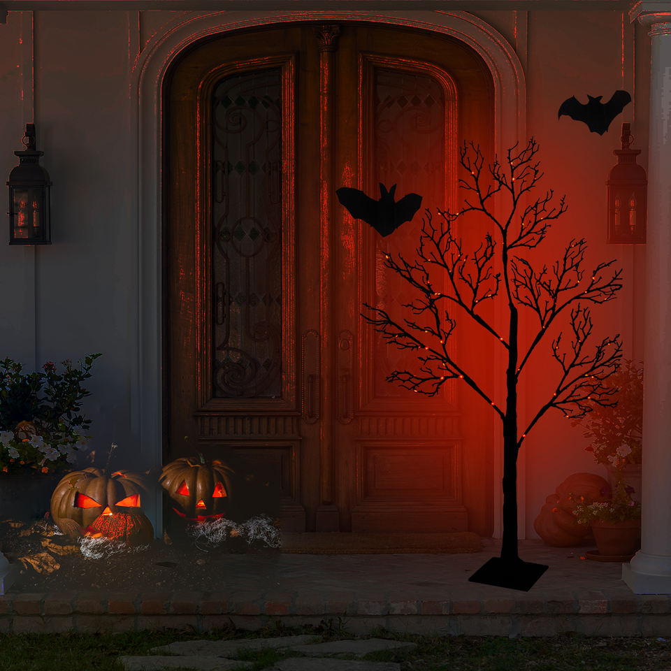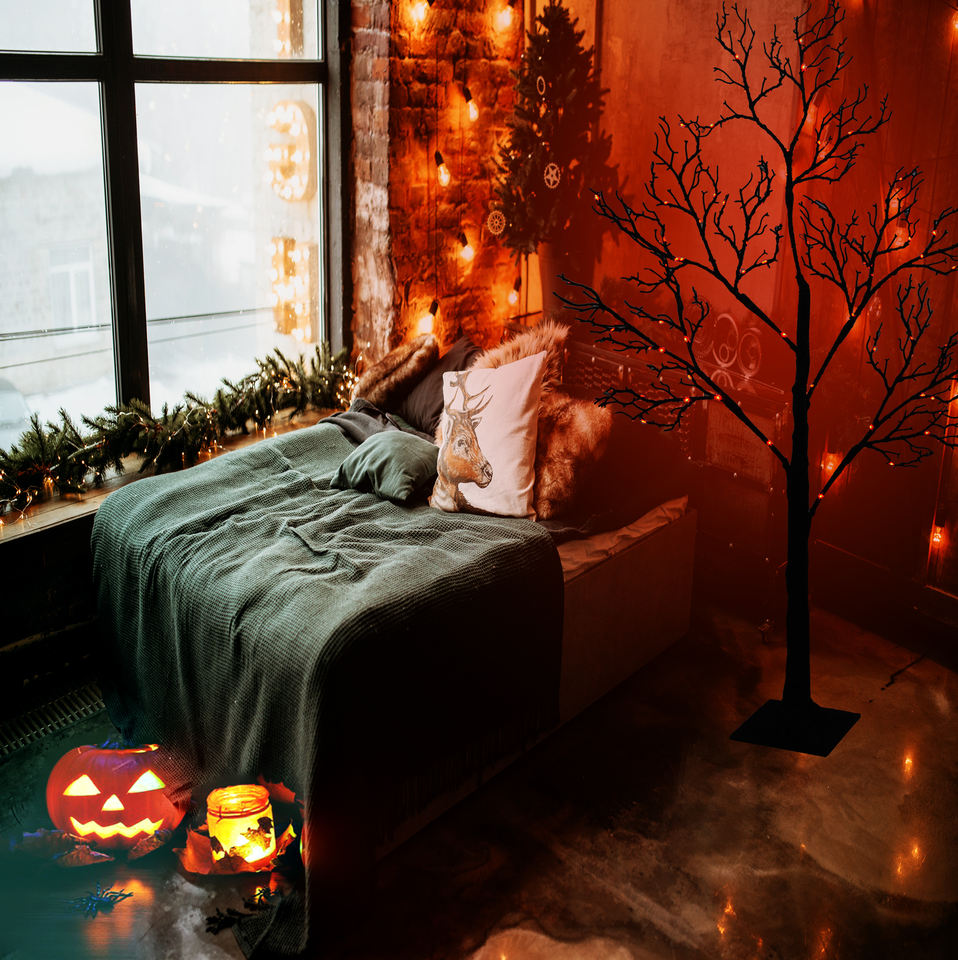 150LED เปลี่ยนสีม่วงส้มฮาโลวีนใหม่1.2เมตรกิ่งไม้สีดำแวววาวไฟตกแต่งคริสต์มาสสำหรับฮาโลวีนโกธิค