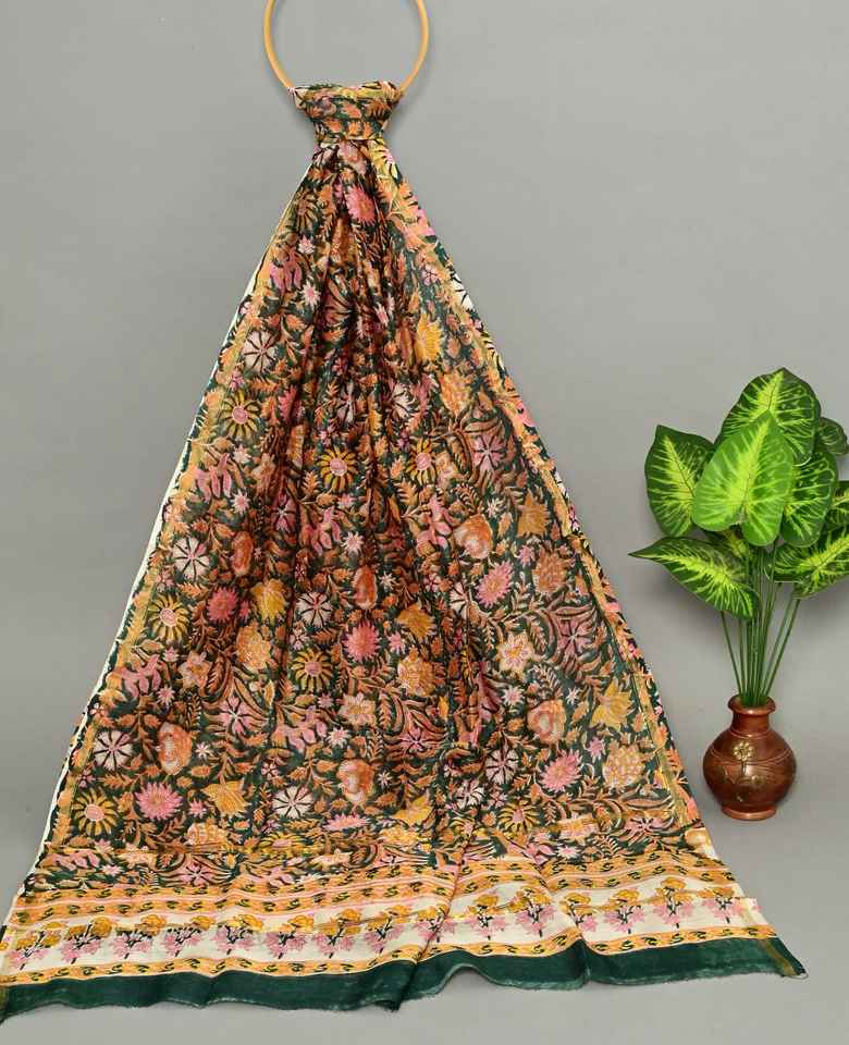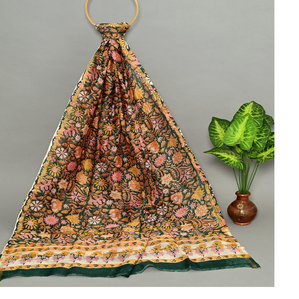 ผ้าพันคอผ้าไหม Chanderi บล็อกมือใหม่และนักออกแบบแฟชั่นขายลายดอกไม้ด้วยคุณสมบัติโลหะ