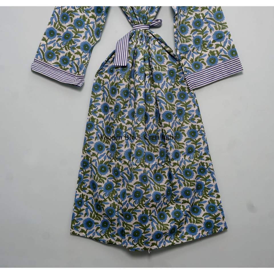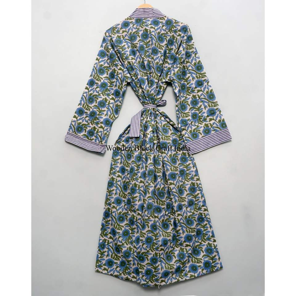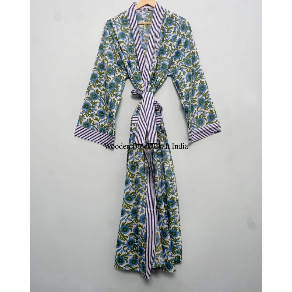 ชุดคลุมกิโมโนผ้าฝ้ายพิมพ์ลายบล็อกแบบใหม่สำหรับผู้หญิง พร้อมสายผูกเอว น้ำหนักเบา สวมใส่สบาย สไตล์โบโฮ เหมาะสำหรับใส่ช่วงฤดูร้อน