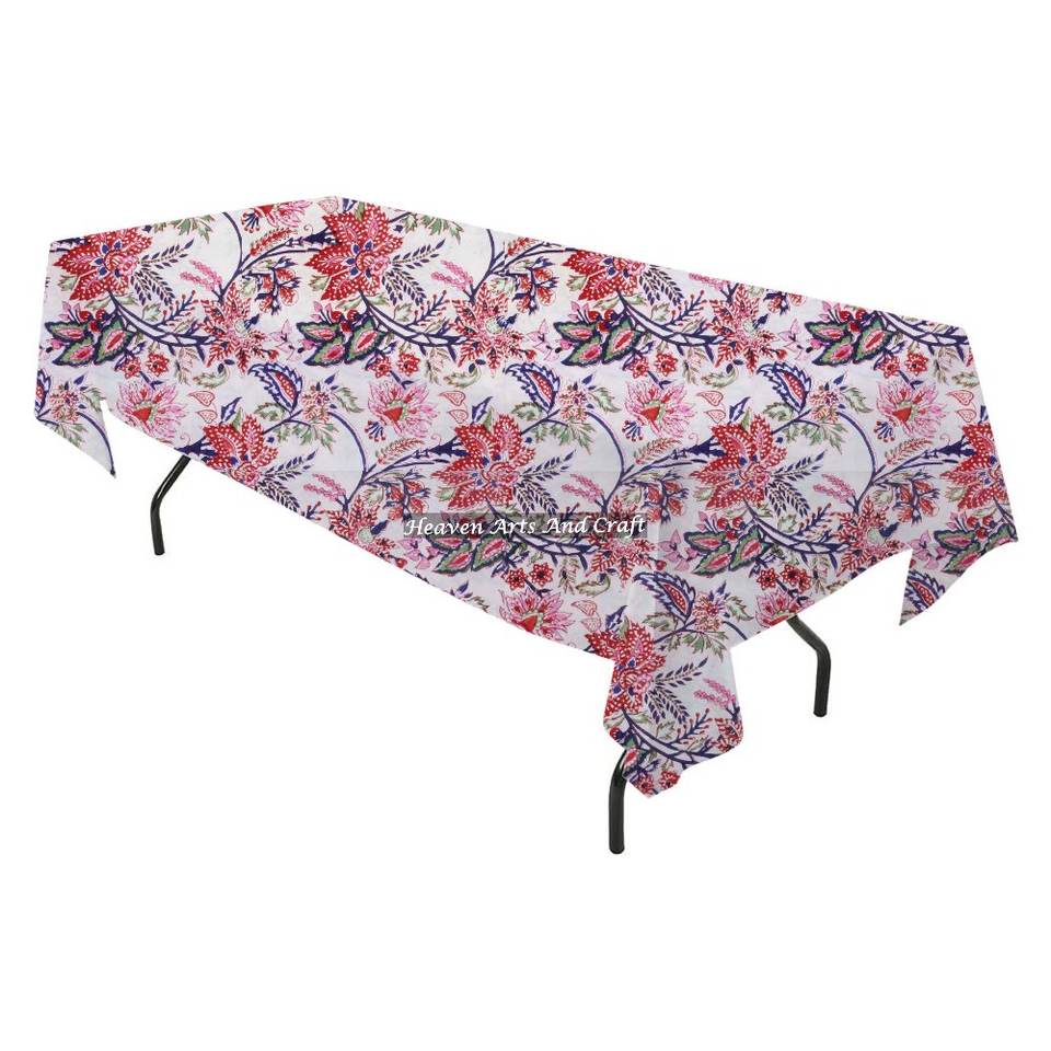 ผ้าปูโต๊ะรูปสี่เหลี่ยมผืนผ้าลายพิมพ์บล็อกด้วยมือแบบดั้งเดิม ทำจากผ้าฝ้าย สำหรับงานแต่งงาน งานเลี้ยงที่บ้าน และตกแต่งบ้าน