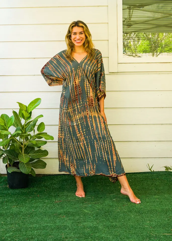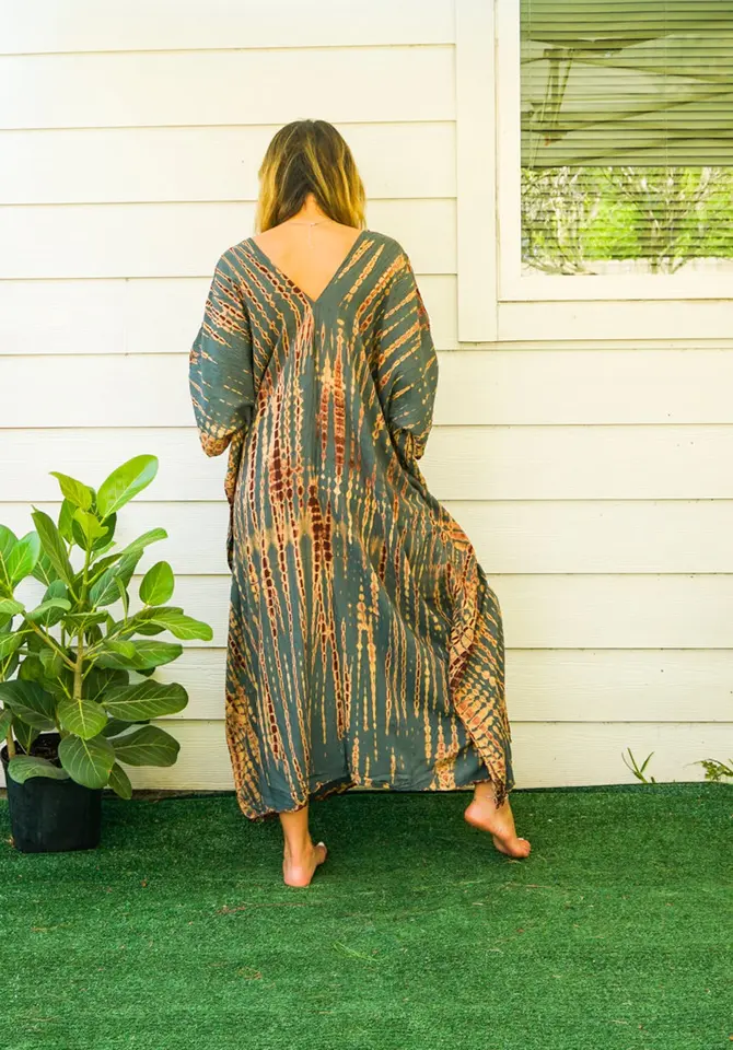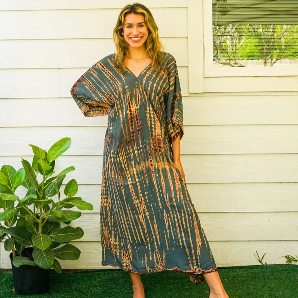 ใหม่มือทําTie Dye Beach Boho Kaftanว่ายน้ําหลวมFit Dyeผ้าเรยอนยาวKaftanสําหรับผู้หญิงMaxi Dress