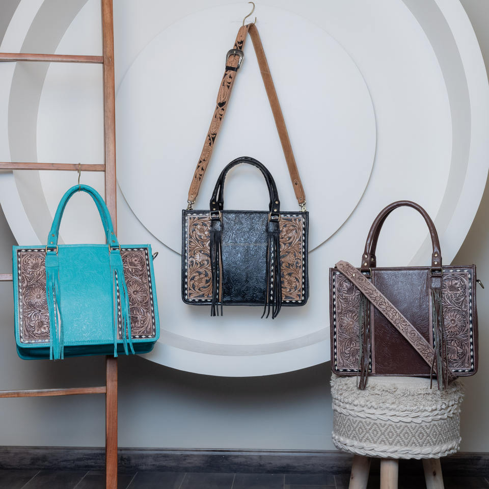 กระเป๋าโท้ทหนังแท้ลายนูนลายดอกไม้สีน้ำตาลสำหรับผู้หญิงกระเป๋าถือสไตล์ตะวันตกแบบซ่อนกระเป๋าถือกระเป๋าโท้ทคาวเกิร์ล