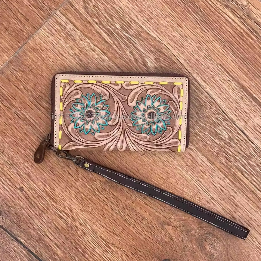 ใหม่มือเครื่องมือแกะสลักกระเป๋าสตางค์หนังคลัทช์เคสโทรศัพท์มีสไตล์หลายใช้กระเป๋าสตางค์กระเป๋าสตางค์หนังแท้สําหรับผู้หญิง