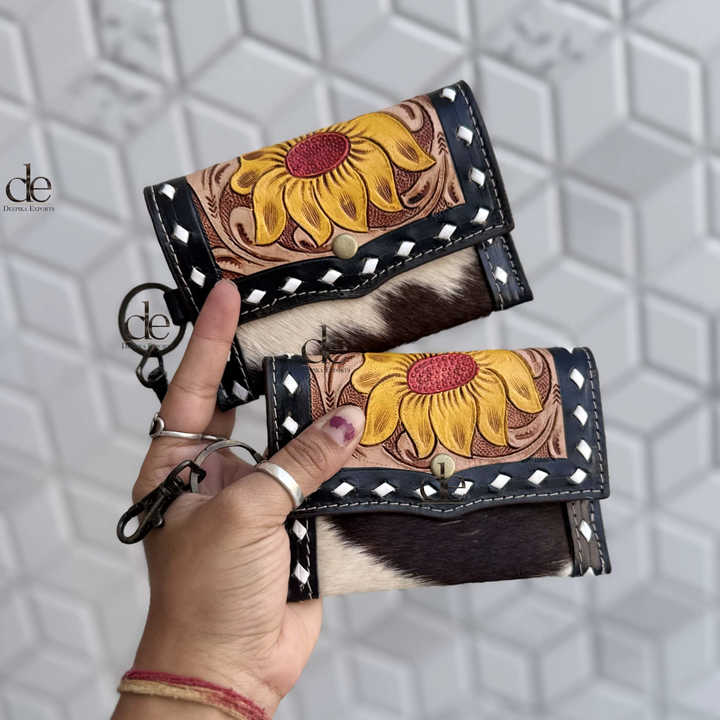 กระเป๋าใส่เหรียญทำจากหนังวัวแบบตะวันตกแกะสลักอุปกรณ์ด้วยมือใหม่กระเป๋าสตางค์ขนาดเล็กแบบมินิสำหรับผู้หญิงของขวัญตะวันตก