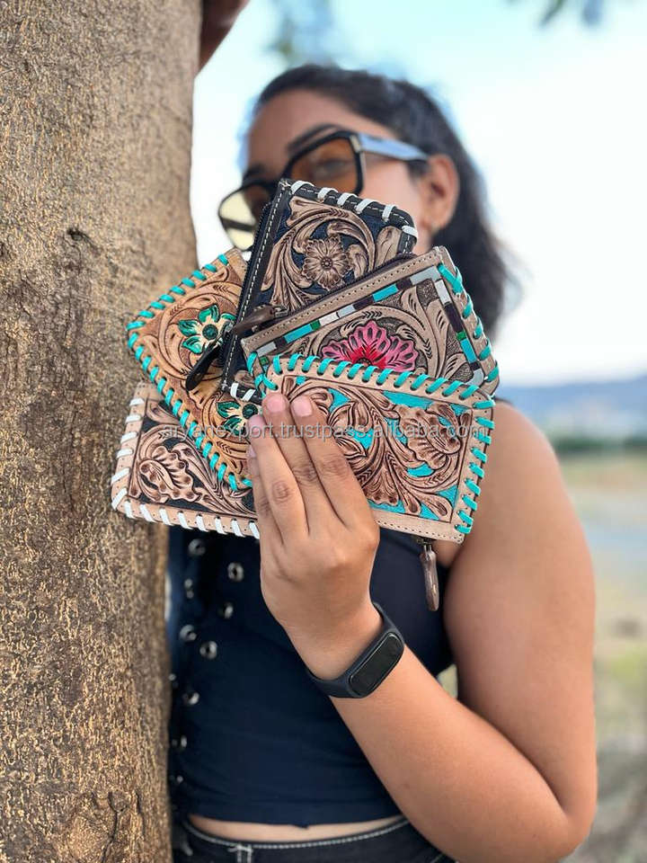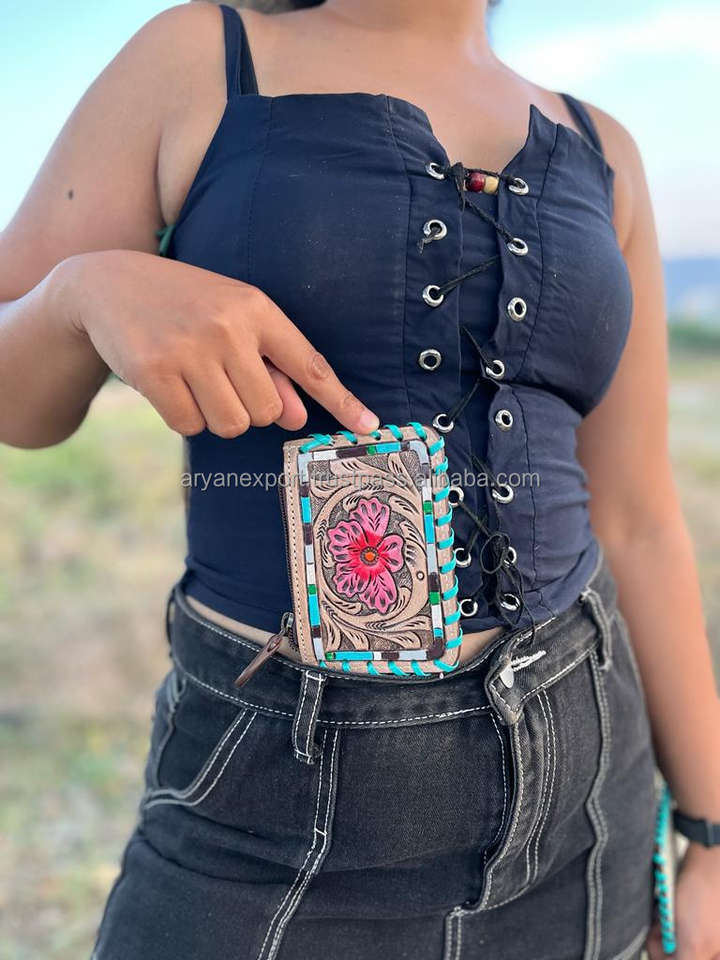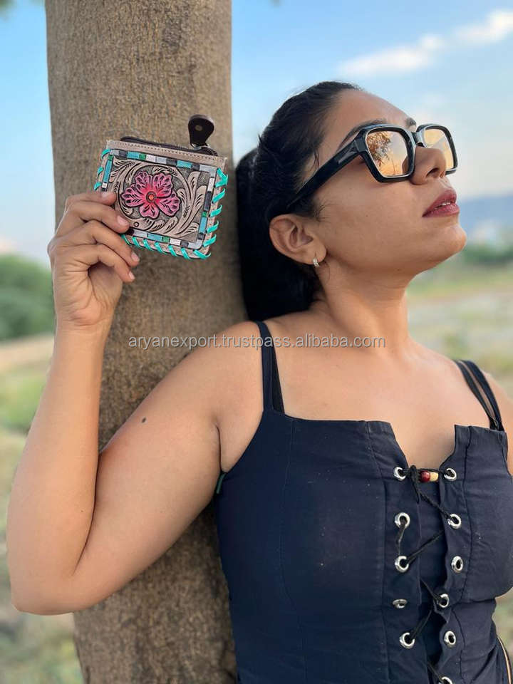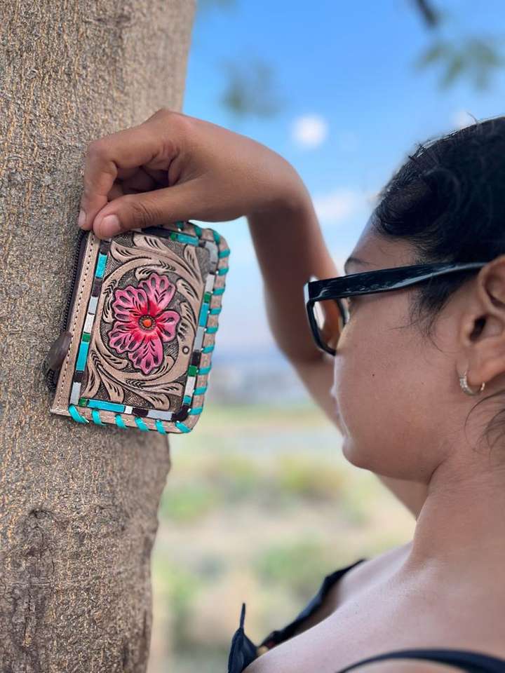 ชื่อผลิตภัณฑ์:กระเป๋าสตางค์หนังลายดอกไม้สีชมพูขนาดเล็กทำด้วยมือ