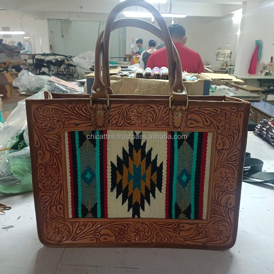 Product name:Designer Tooled Aztec Leather Tote Bags