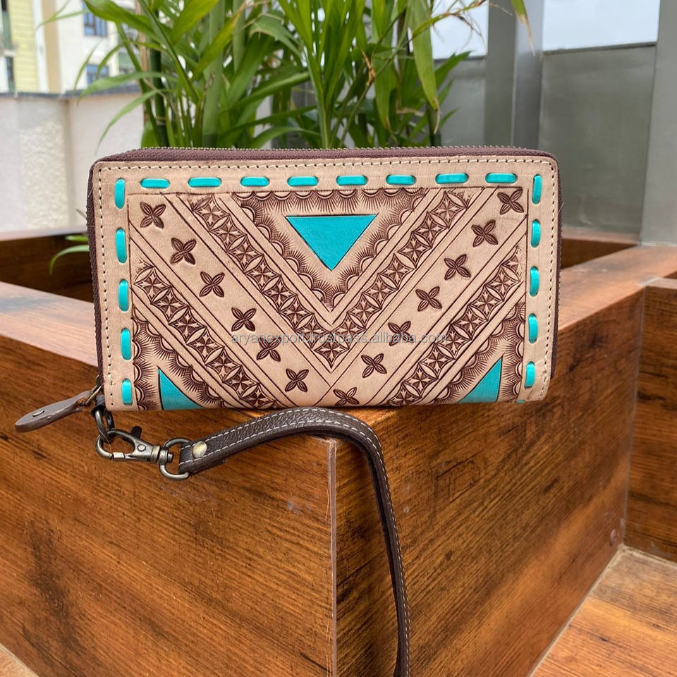 Product Name:Hand Tooled Carving Leather Wristlet Wallet