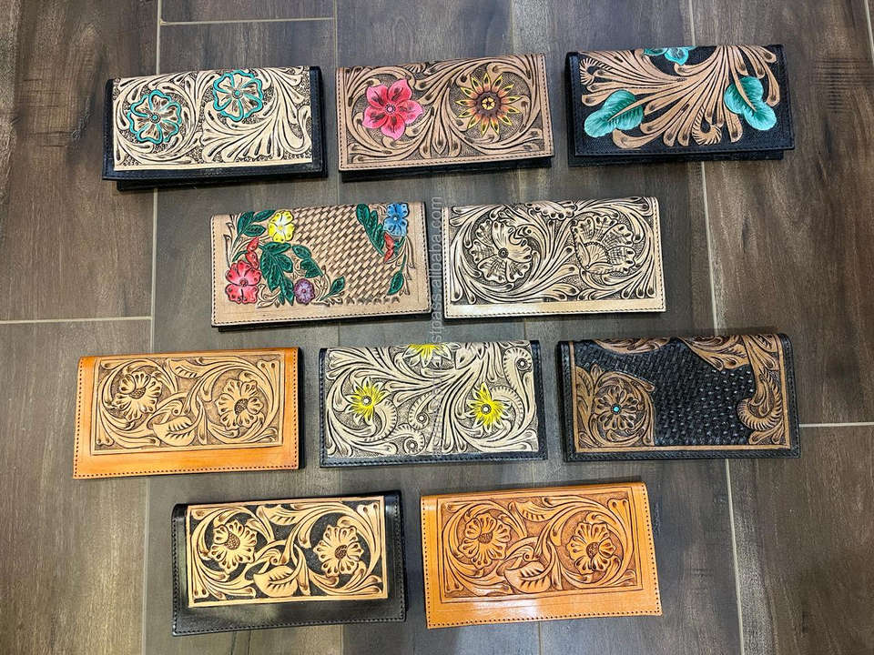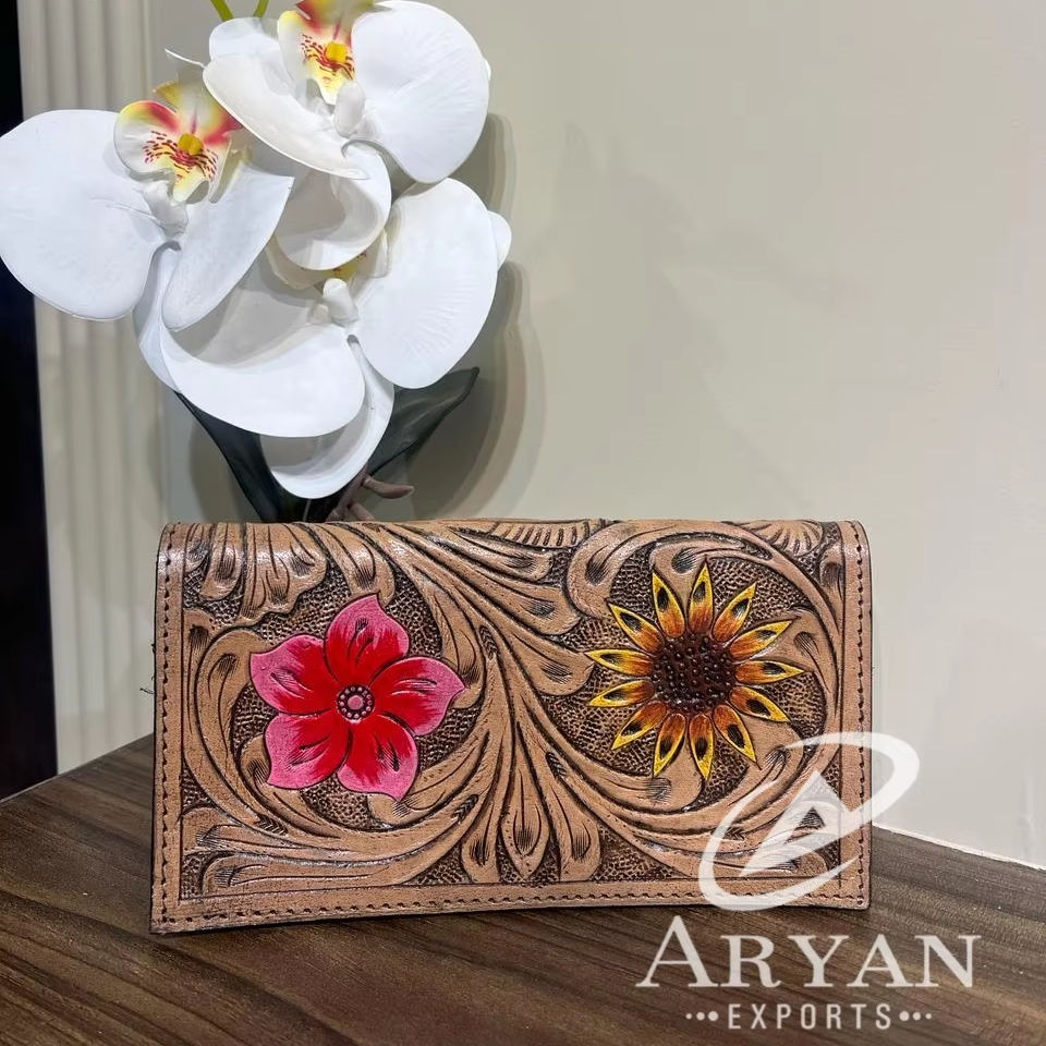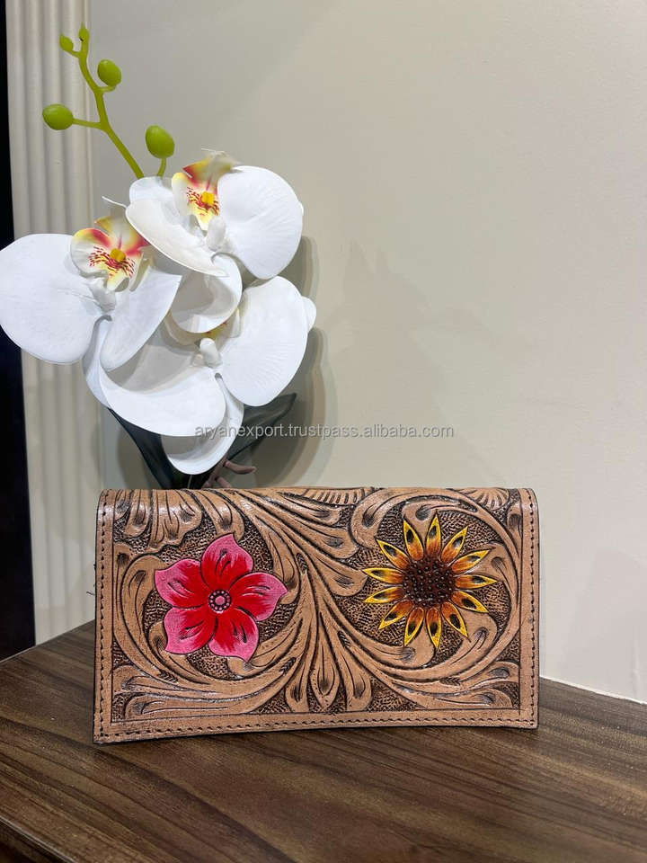 ใหม่เครื่องมือมือแกะสลักกระเป๋าสตางค์Bifoldหนังดอกไม้กระเป๋าสตางค์Toolledหนังดอกทานตะวันออกแบบสําหรับผู้หญิงกระเป๋าสตางค์หนังแท้